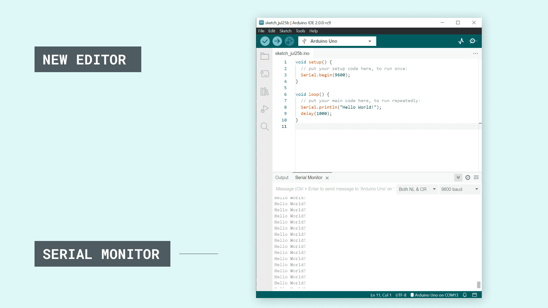 Now, let's take a look at the IDE 2. Notice how the Serial Monitor is located at the bottom of the editor: