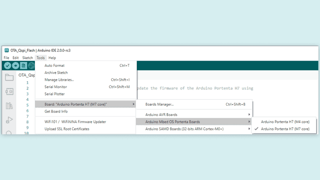 Learn how to perform an OTA update of the firmware on the Arduino Portenta H7